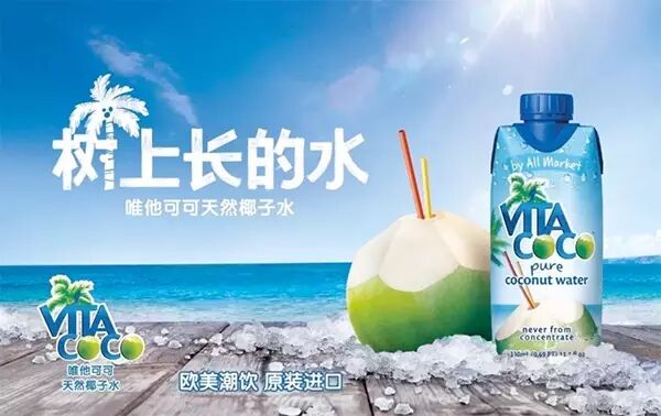 2014年,美国椰子水品牌唯他可可与华彬集团联手成立唯他可可中国公司。在人们日益注重健康的大环境下,主打天然健康营养丰富的椰子水开始活跃于市场。2016年,唯他可可提出了“树上长的水”概念,希望以此独特卖点开拓更多市场。但想要实现这一目标并非易事。“在美国我们主打天然补水,但对于中国消费者而言,这个标签过于模糊和宽泛,不足以触动他们。我们经过很长时间的调研和思考,最终提出了【树上长的水】这个概念。”唯他可可副总裁翁海新说。“椰子水是唯一一种在树上长的水,直接就可以饮用。这个概念给消费者传达的核心信息,就是天然和健康。而且这种语言描述方式对消费者来说是非常具有画面感的,能够起到很好的品牌联想作用。”