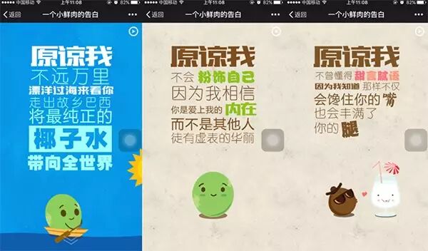 作为国内市场首款椰子水定位产品,唯他可可在2016年借助一系列别出心裁的整合传播,将“树上长的水”这一传播概念丝丝入扣地诠释出来,在年轻的目标消费群中充分展示了唯他可可椰子水“健康、天然、活力”的产品特质。《一个小鲜肉的自白》和《揭秘椰子水的秘密》两支H5以拟人化的萌版青椰子为主角,把“补水、健康、清爽、纯粹、新鲜”等产品卖点通过内心独白的方式娓娓道来;《你的快递请签收》H5则主打明星时尚潮牌,不仅拉出了蕾哈娜、麦当娜等唯他可可背后的明星投资人,更在伦敦时装周、国际电影节、维密秀、女神新装等年轻人关注的时尚圈大事件中怒刷唯他可可存在感,强化产品说服力。监测显示,活动H5总浏览量55287次,平均停留时间43秒,传播量远超预估。