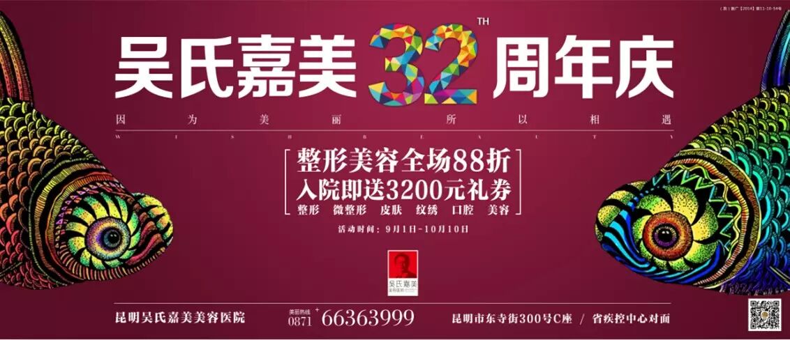 入院即送3200礼券,整形美容全场88折,还等什么?立即点击左下角↓↓↓“阅读原文”或直接致电0871-66363999与医生助理一对一沟通,品鉴吴氏嘉美32周年庆经典项目。