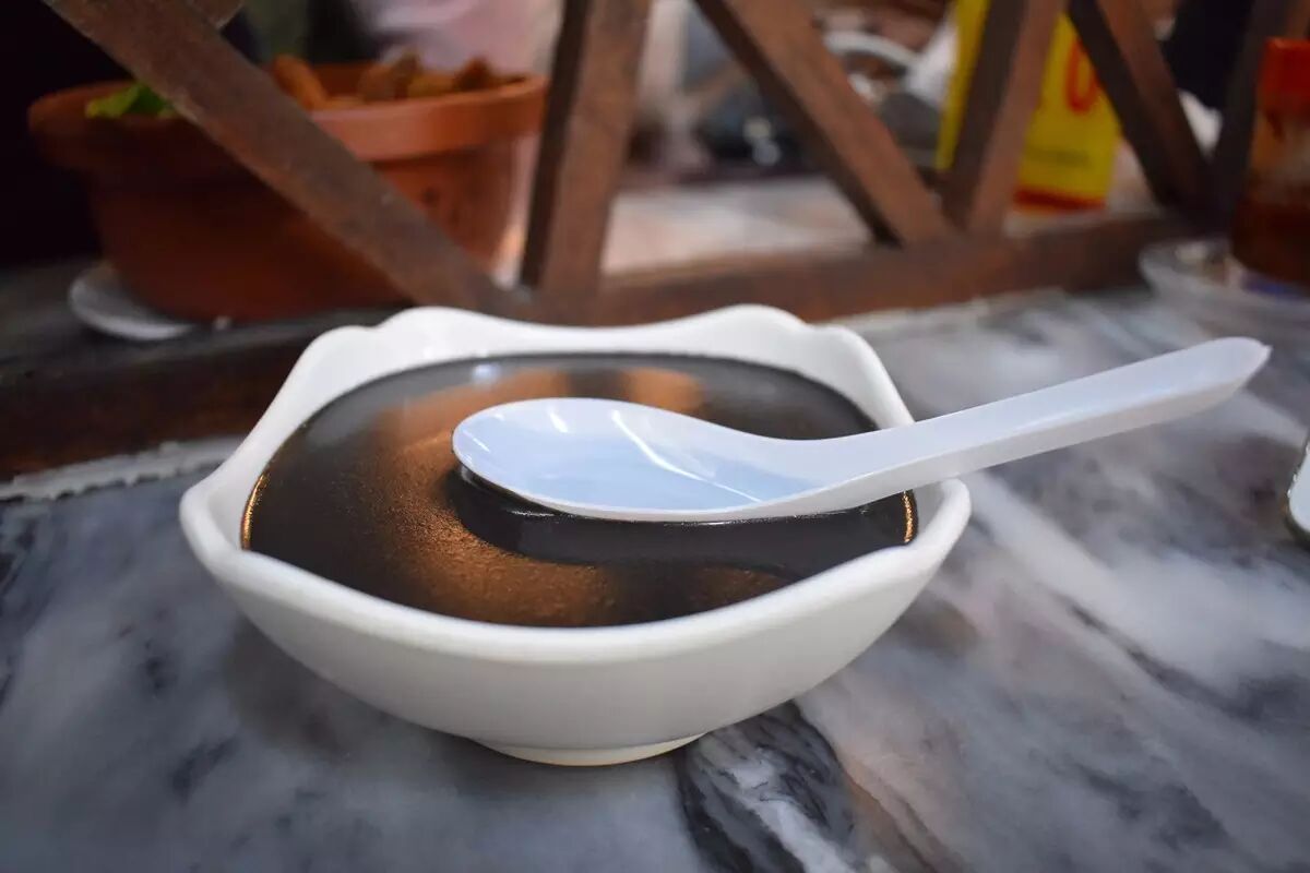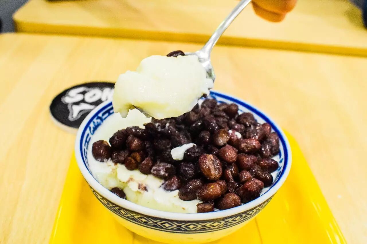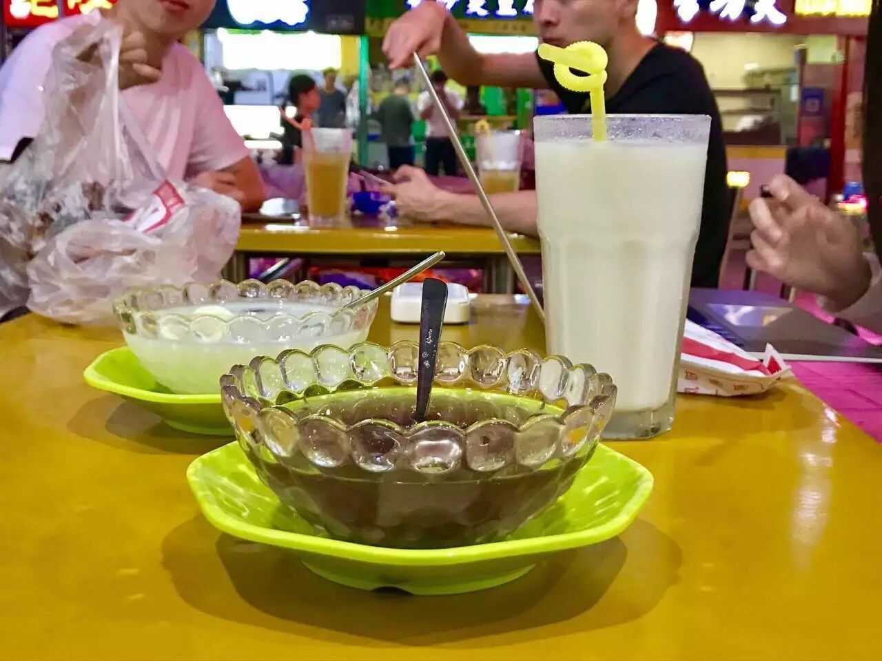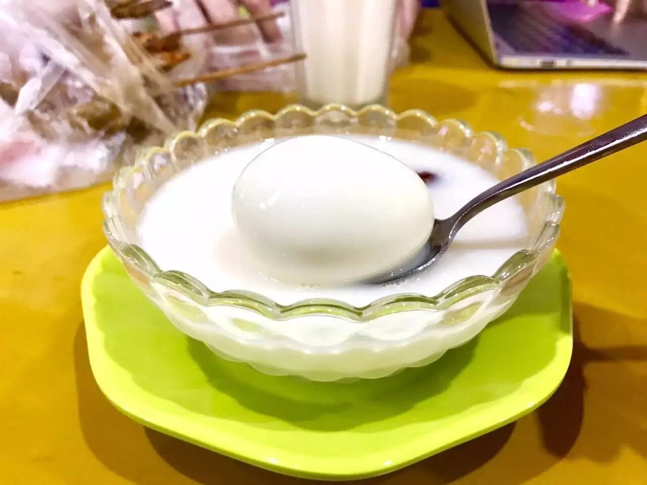 姜撞奶,5元。一个碗放好姜汁,再倒入牛奶,等一分钟,奶就凝固成型,一口下去,辣上喉咙,过瘾。