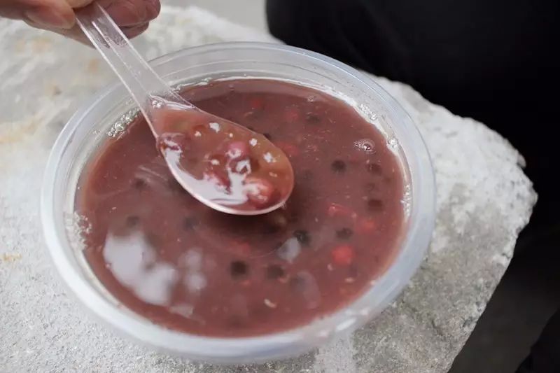 绿豆沙,加陈皮,香草,绵得很,稠得很,心意十足,盛惠5元。莲子鸡蛋糖水,莲子和薏米占了半碗,三碗糖水加一碗濑粉,结账21元,实惠得让人感激。