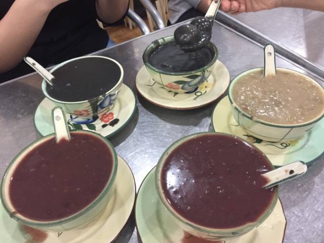 最好吃的:椰汁玉米马蹄爽、海带绿豆沙、椰汁雪耳木瓜、莲子红豆。5-7元一碗。