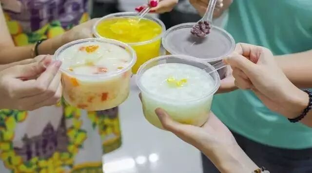 最好吃的:椰汁玉米马蹄爽、海带绿豆沙、椰汁雪耳木瓜、莲子红豆。5-7元一碗。