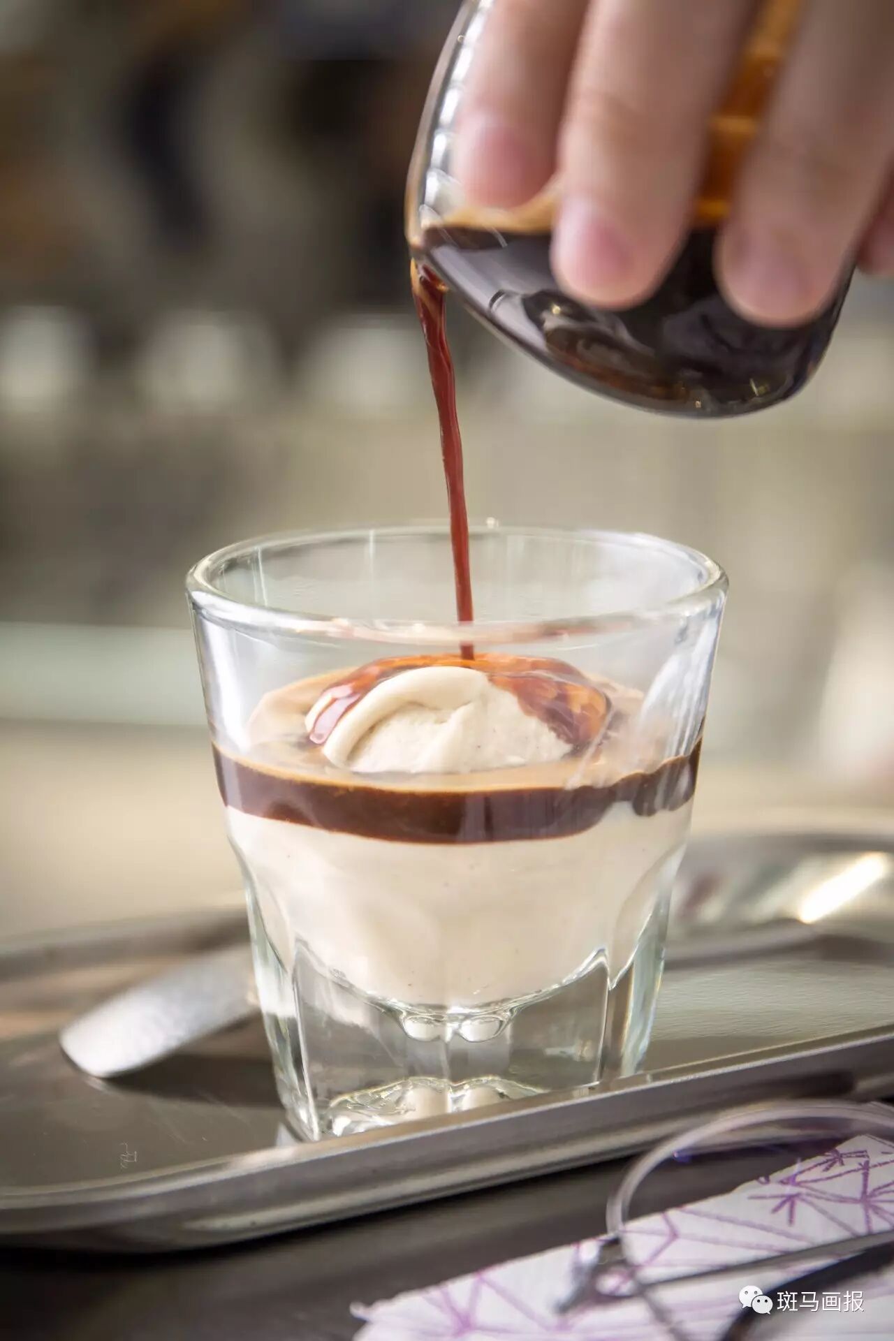原来里面放了一整颗冰淇淋球!倒上热乎的意式浓缩咖啡~对没有错!就是意大利最经典的咖啡之一——阿芙佳朵!