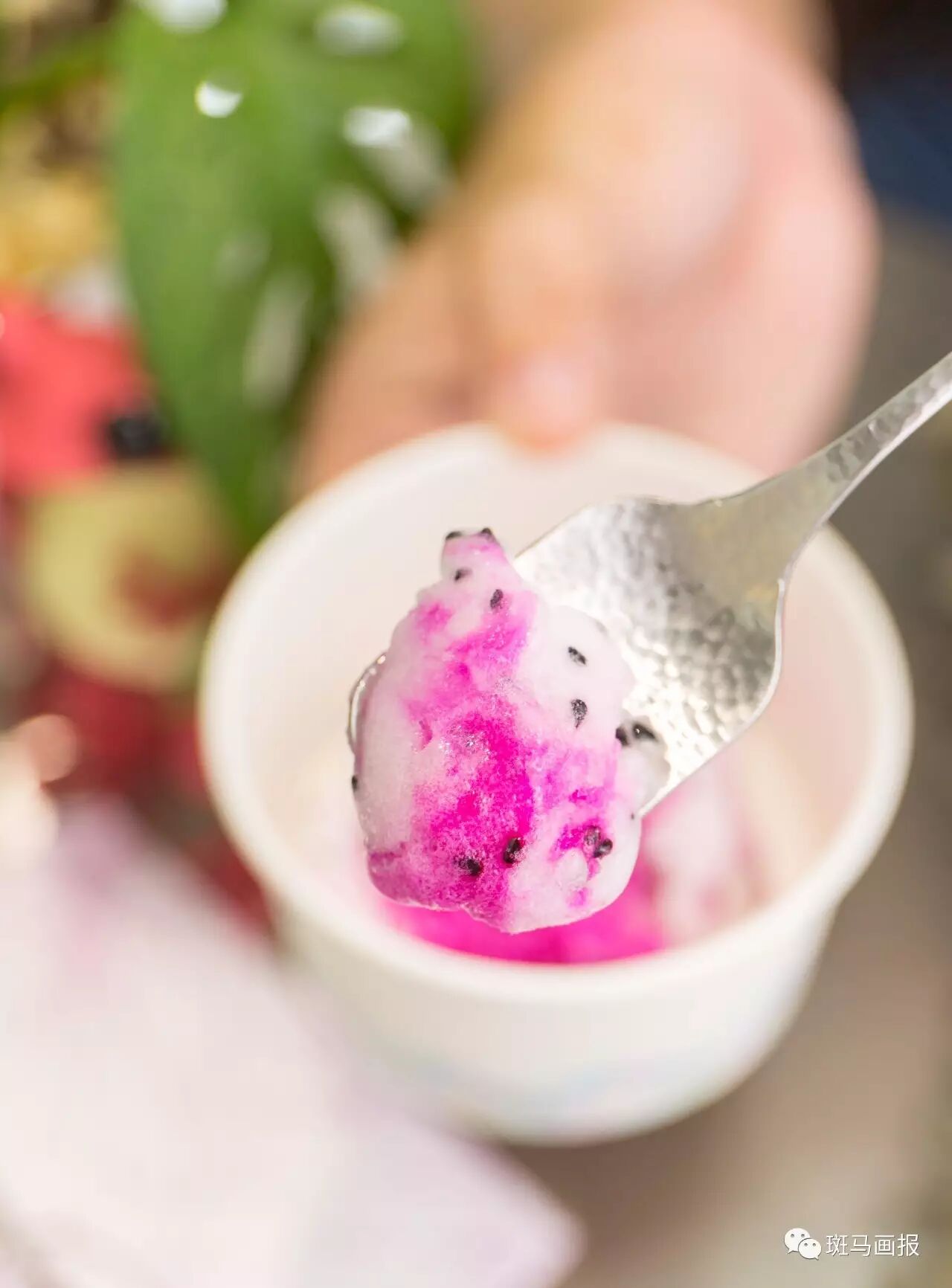 口感也是更加偏雪芭的沙沙感,就像是吃了一个冻火龙果般!