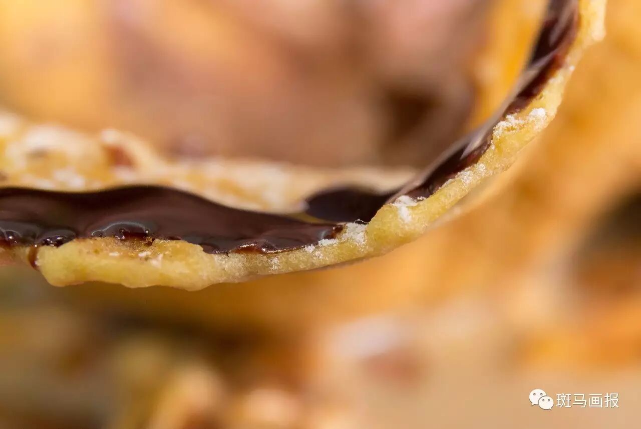 华夫饼也是做的超薄款哦~淋上一层巧克力酱,记得快点吃掉,不然就不脆啦!