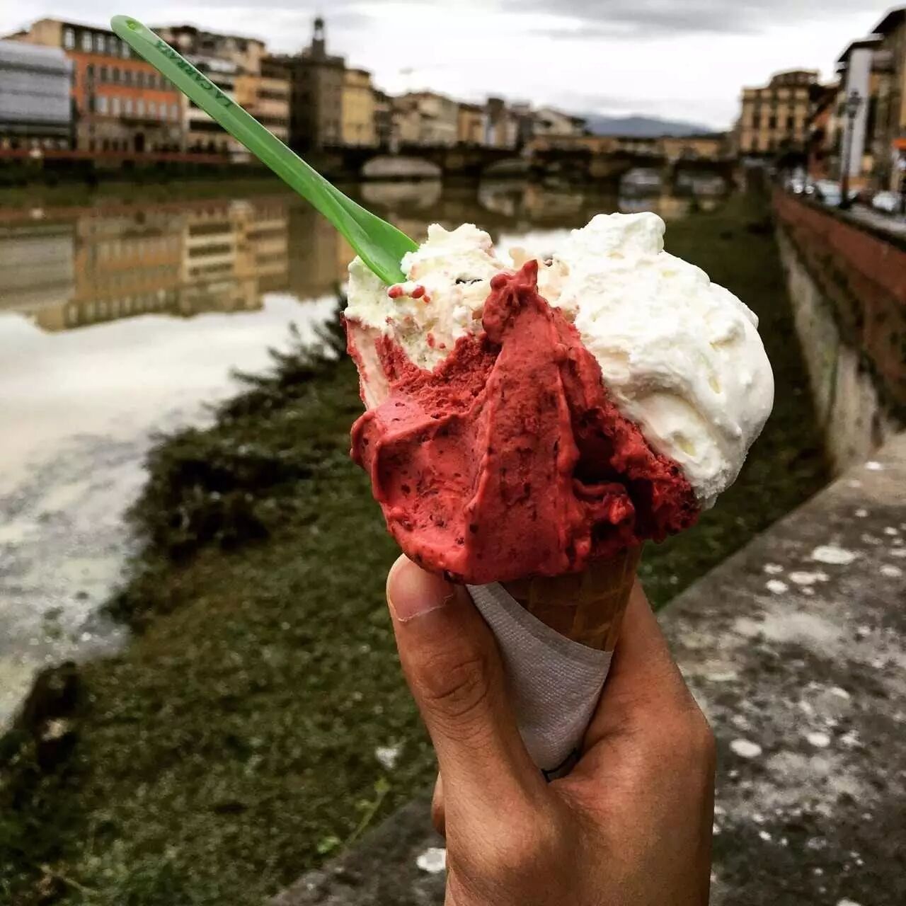 Gelato,在意大利的小店买,看着颜色鲜艳的,随便点三个球,好吃到飞起。