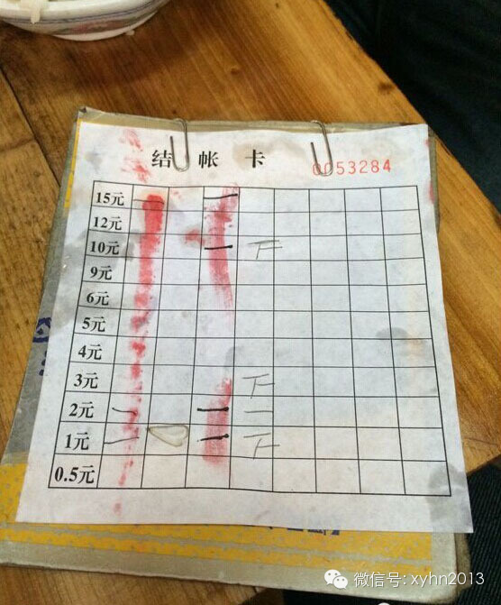 看看我们的账单!味美价廉哦!