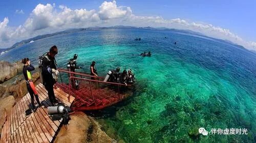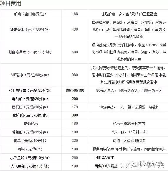5、爱好潜水的朋友,一定要去蜈支洲岛,又名情人岛 商业化很浓,被个人承包了,花费比较高,至少要在3、5百以上(后边附游玩项目价格表,真心不便宜。);可以报个1日游的团,酒店里一般都能报。我是住的青旅,和驴友一起报的。上岛必须坐电瓶车80元/位,带你走;因拍摄《私人定制》而走红。