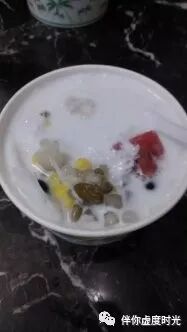 椰奶配上椰、茸绿豆、红豆、淮山、莲子、茨实、薏米、西米、百合、红枣和南北杏,并加入西瓜、菠萝、龙眼等