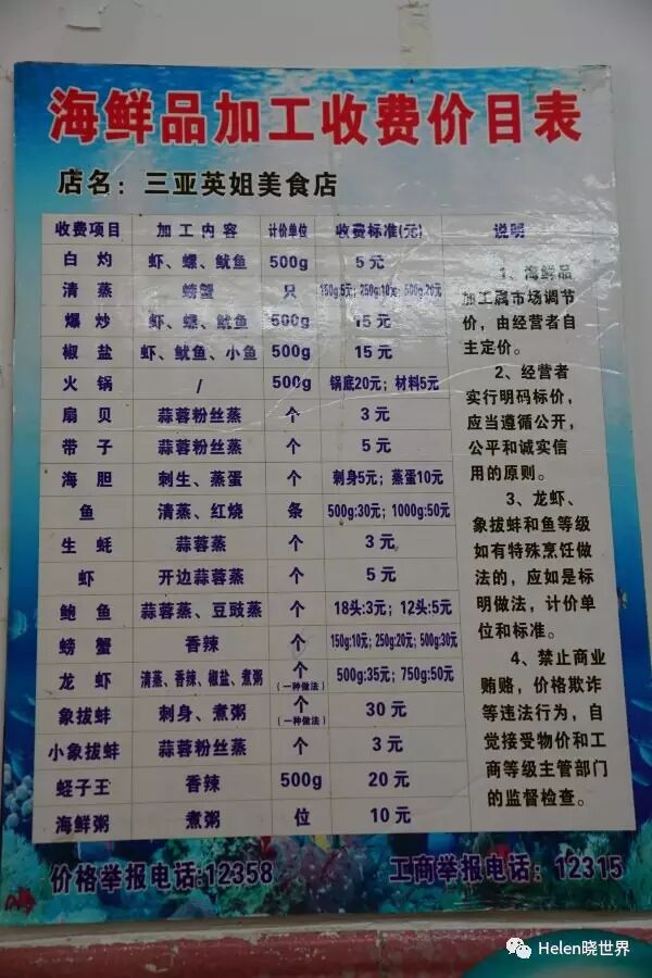 不过讲真,对于三亚的海鲜市场,去之前是有心理障碍的,因为我们全家都不会砍价-_- 而且这边海鲜大概的价格,心里也完全没数。所以为了不被宰,甚至提前都在看官方发布的每周海鲜指导价格了,哈哈哈。