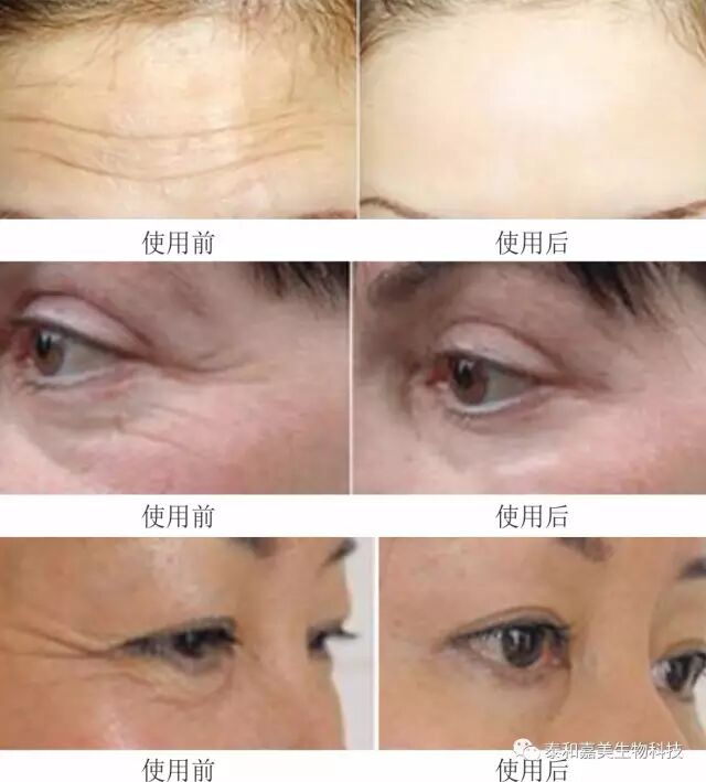 4.祛除皱纹除皱效果非常好,能将凹陷下垂的肌肤充盈起来,舒展面部细纹以及鱼尾纹,川字纹等,紧致肌肤。