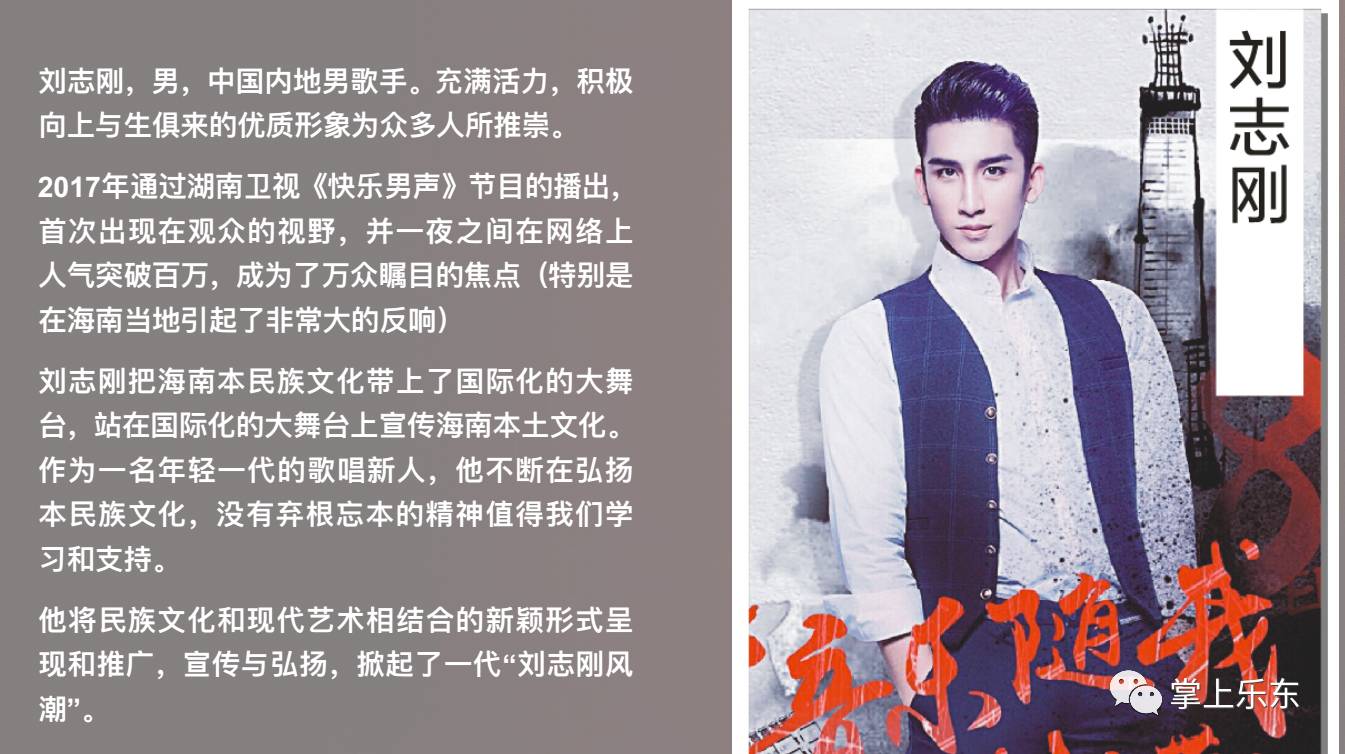 刘志刚此次回到家乡出席乐东成立黎族自治县30周年庆活动,将是他从比赛以来首次在家乡与广大父老乡亲见面。想必很多朋友都在问,赛后志刚都在忙些什么,赛后志刚成立了自己的工作室,成为了签约艺人,与诸多明星同行忙着国内外的商演通告!为了满足大家的好奇心,小编也给大家准备了志刚近期的工作视频,让我们一起来看看台前幕后志刚的工作历程吧!让我共同期待和祝愿乐东成立黎族自治县30周年庆大型文艺活动取得圆满成功。