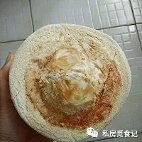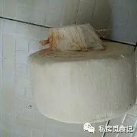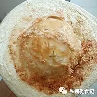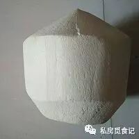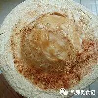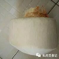 6. 这时会发现中间是柔软的白色,把凸起那部分外面硬的地方,用刀沿着椰子壳弧度处理干净。