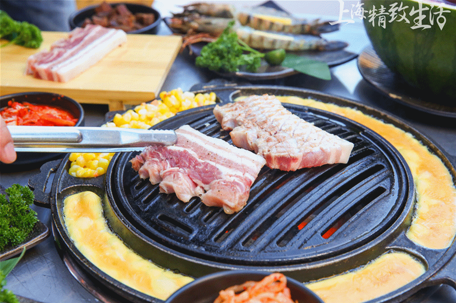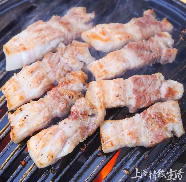 烤五花肉是小黄瓜的最爱,越厚翻牌几率越高哦~于是,这道肉一上来小黄瓜就惊呆了,竟然如此之厚!