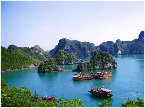 下龙湾海上风景区-乘坐观光船游览越南首个被联合国教科文组织评为世界自然遗产地的景点,2011年世界新七大奇迹之一的下龙湾海上风景区,沿途欣赏由形态各异的石灰岩岛屿构成的天然海上奇观,景色绮丽,如诗如画。