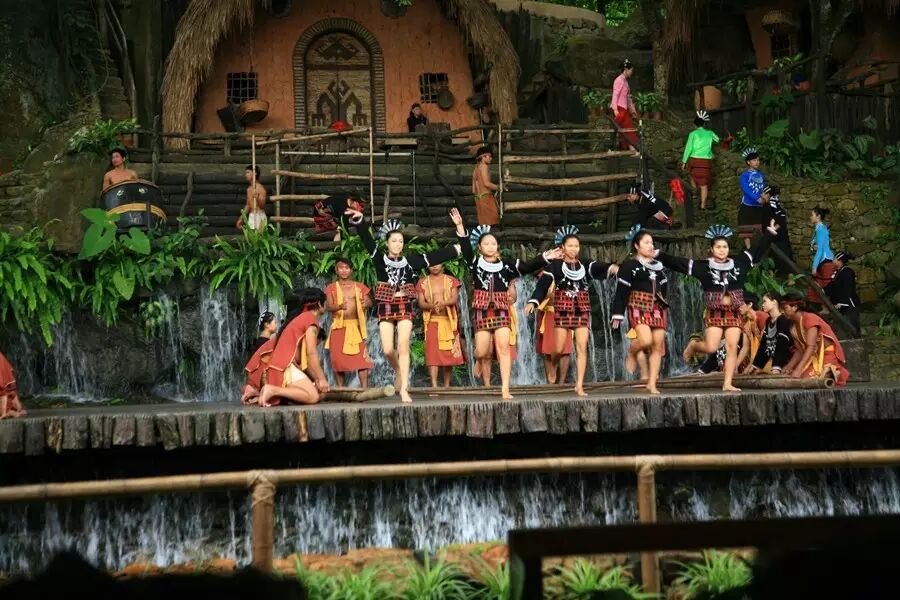 釀米酒的攤檔和工房。走到戶外又可以欣賞到不同的動感表演──有幾乎動員所有檳榔谷村民的大型歌舞表演,亦