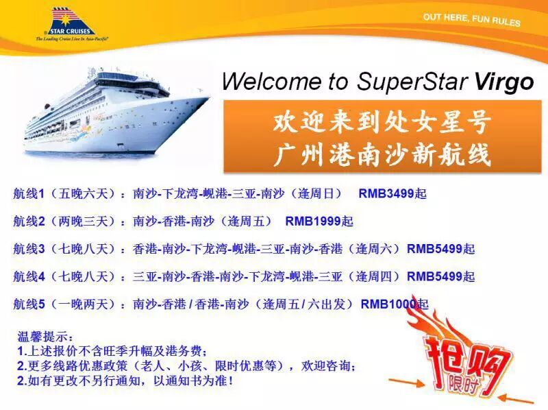 丽星豪华邮轮-处女星号 三亚+下龙湾+岘港5晚6天豪华游