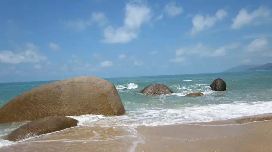 景區電瓶車) . 椰夢長廊–三亞灣椰夢長廊是環三亞灣修建的一條著名的海濱風景大道,有“亞洲第一大道”之稱。椰夢長廊長20公里,臨海一側為景觀優美迷人的熱帶植物園林,與銀色的沙灘、藍色的大海相映成趣,組合成一幅色彩斑斕的長卷畫圖;另一側是魅力四射的休閒度假區,佈局巧妙,風格各異的別墅、賓館等園林式現代建築處處林立。於椰夢長廊作短暫停留,拍照留念。