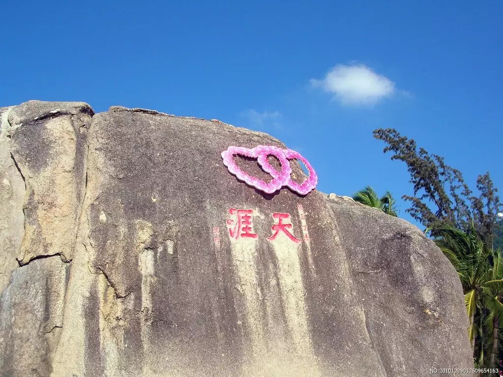 天涯海角游覽區位於三亞市區約23公裡的天涯鎮下馬嶺山腳下,前海後山,風景獨特。步入游覽區,沙灘上那一對拔地而起的高10多米,長60多米的青灰色巨石赫然入目。兩石分別刻有『天涯』和『海角』字樣,意為天之邊緣,海之盡頭。(含景區電瓶車)