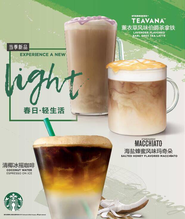 一杯之中阅尽春色,一杯之外自有主张。在星巴克,轻生活可以是舌尖沁心淡泊唤醒内心的美好体验;也可以是日常生活中举手之劳关爱地球的行动。这样的“轻”生活,你,一定值得用心去体验!