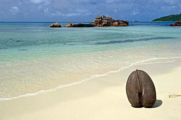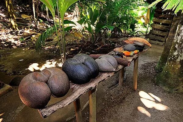 塞舌尔两大国宝,一是被称为“爱情果”的植物海椰子,该树分雌、雄两种,果实如同人类的臀形。