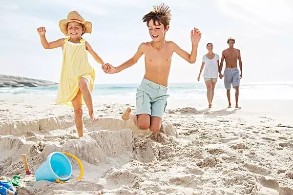 可爱的儿童笨拙的用沙铲堆砌着他们梦想中的城堡,热恋中的年轻人或者蜜月中的情侣们尽情享受火辣的阳光,白发苍苍的老人们牵着手伴着夕阳在海滩上散步……