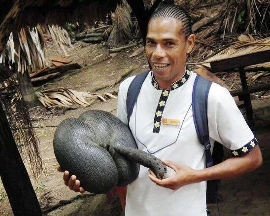 世界上最让人脸红的树!你想歪了么?你第一眼以为是什么? 2023-04-19 23:50:29 来源丨唔哩 海椰子是塞舌尔普拉兰岛及库瑞岛的一种特有棕榈,最大的叶子面积可达27平方米,活像大象的两只大耳。由于整座树庞大无比,所以也被称为“树中之象”。因为这种果子长得非常像女性的骨盆,这位基督教徒认为如果有任何树能够激发人类对的好奇,无疑就是它了。海椰子可以在海上漂浮,但不能在海滩上生长,不能随海水远走他乡中生长。因此海椰子只在塞舌尔生产。你想歪了么?你第一眼以为是什么?