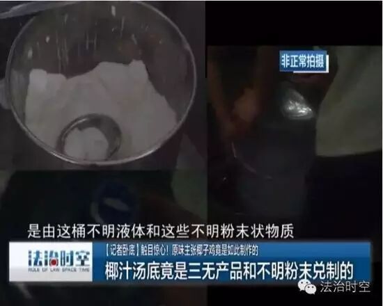 椰子鸡汤使用三无产品和不明粉末做汤底?