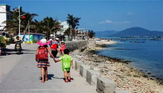 上岛之后可以入住客栈休息,树荫下看海景,享受亲子时光。