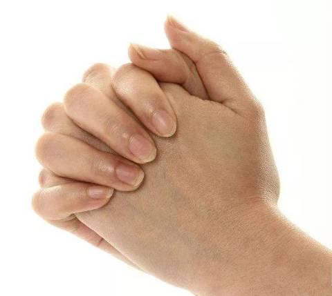 双手高举过头,握紧拳头,然后尽量向外伸展每根手指,做5分钟,可减少手背青筋暴露,解除紧张,使手部柔软。