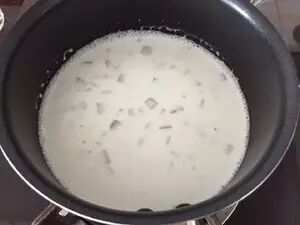椰浆和黄家荟芦荟丁同煮,加入白砂糖(按个人口味添加),吉利丁粉先用少量的水湿润,再加入椰浆里加热,不用沸腾,约50度左右即可,关火晾凉
