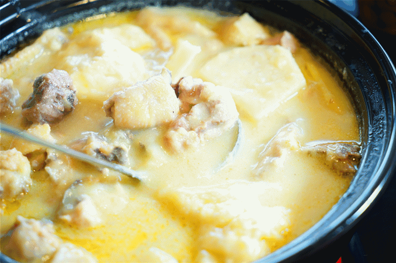 和椰子鸡清汤火锅不一样,添加了鲜奶,口味更加地浓郁。汤汁奶白奶白的,喝起来也不会很腻,椰肉越嚼越香。