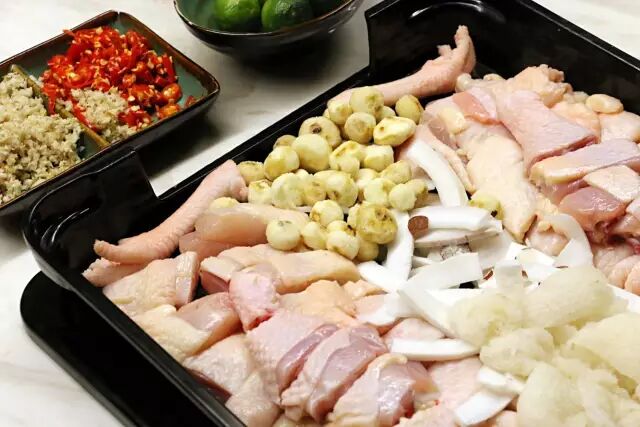 鸡煲的用料讲究,鸡肉是山坡放养土鸡鸡肉。煮起来鸡肉比较紧实,比较脆。