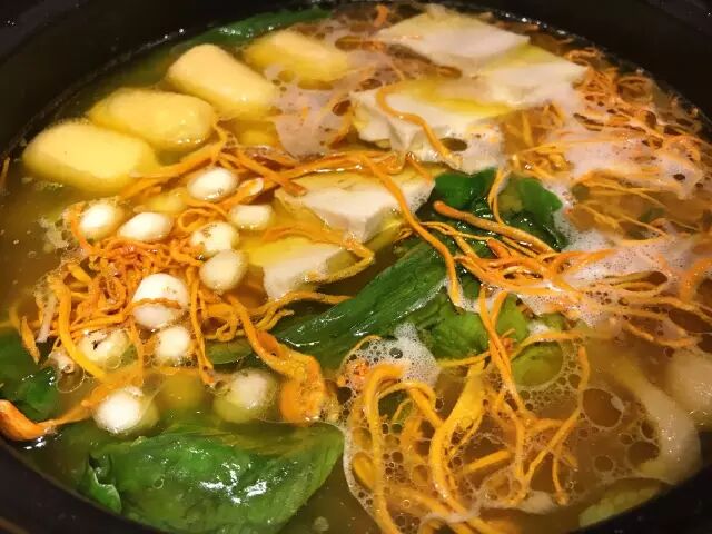 加入虫草花、鳕鱼豆腐、珍珠马蹄等等菜品味道很不错喔,不但不会破坏汤的鲜甜,口感很不错。