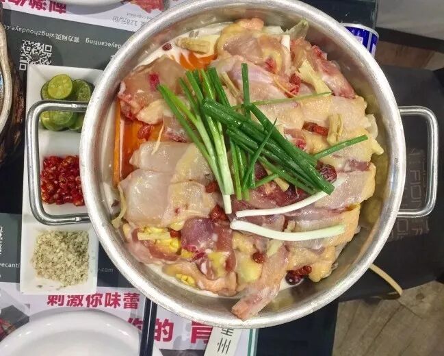 海南放养走地鸡文昌鸡,椰青锅底,用的是店内专供的“青椰水”,由椰汁与玫瑰岩盐调制而成,有着秘制配方,椰子水鲜甜,玫瑰岩盐提味。