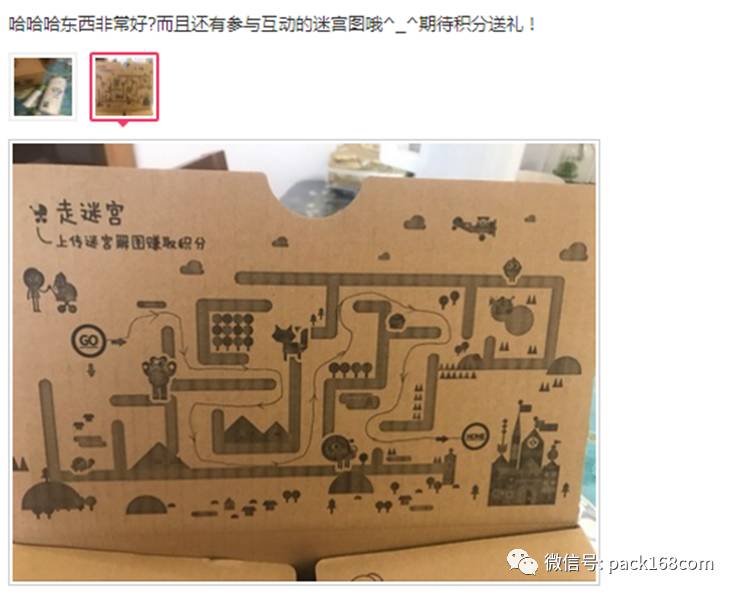 包装在打开的过程中,不仅加上了文字的品牌以及logo作为宣传,还特意针对婴幼儿产品附带迷宫游戏图,拆箱过程一下成为了一场亲子娱乐过程,可以说是又刷了用户的一波好感!