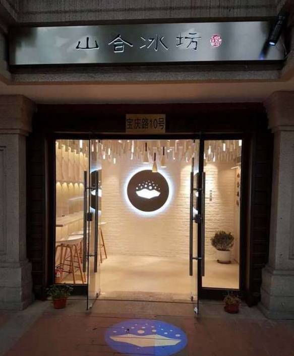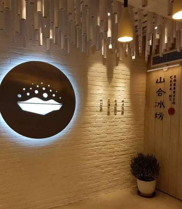 店LOGO像一个嘴唇,也像一座冰山,零零碎碎的点,还算是飘落的雪花,不禁让人想去尝尝吃冰是什么感觉。