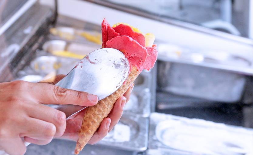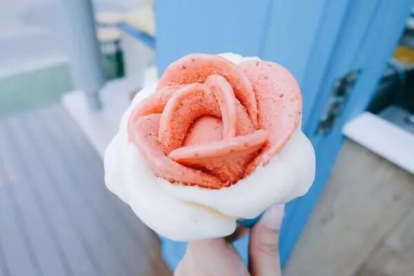 宁曼路有一家Gelato冰淇淋店,店员能信手捏出娇艳欲滴的“花朵”。99君想说,如果你称它为"花店"也不是不可以。看似随意的动作,却能迅速将玫瑰状的冰淇淋举到你眼前,而且口感很棒,甜筒也很好吃。每个甜筒可以选择两种口味搭配~