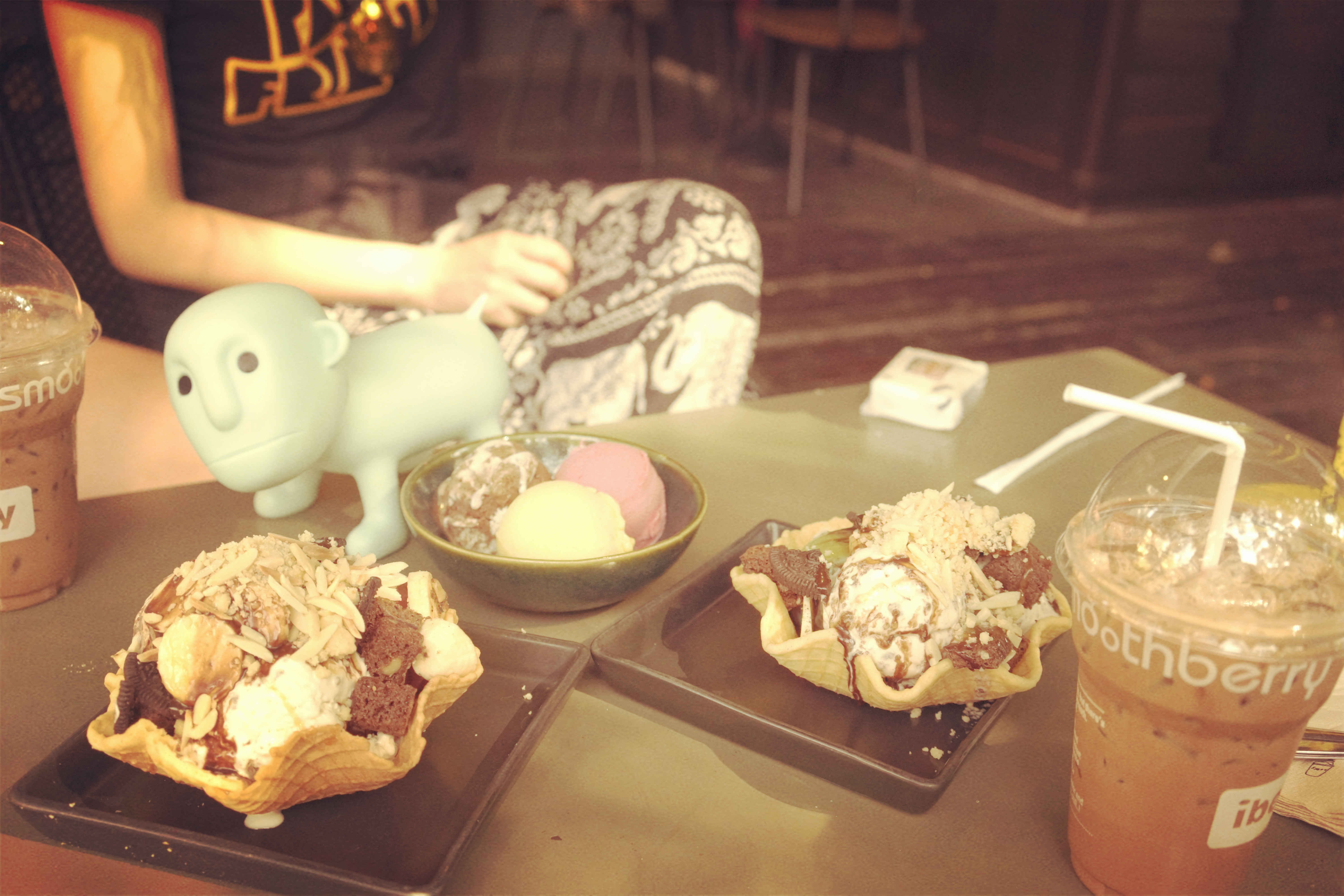 好吃的冰淇淋加上冰咖啡,酷暑必备