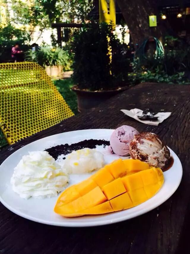 图上这家店现在已换了店家,售卖清迈特产,但是很多食客都是从认识这家店的外形开始认识Mango Tango的。现在是泰国知名的甜品连锁店,号称“泰国许留山”。