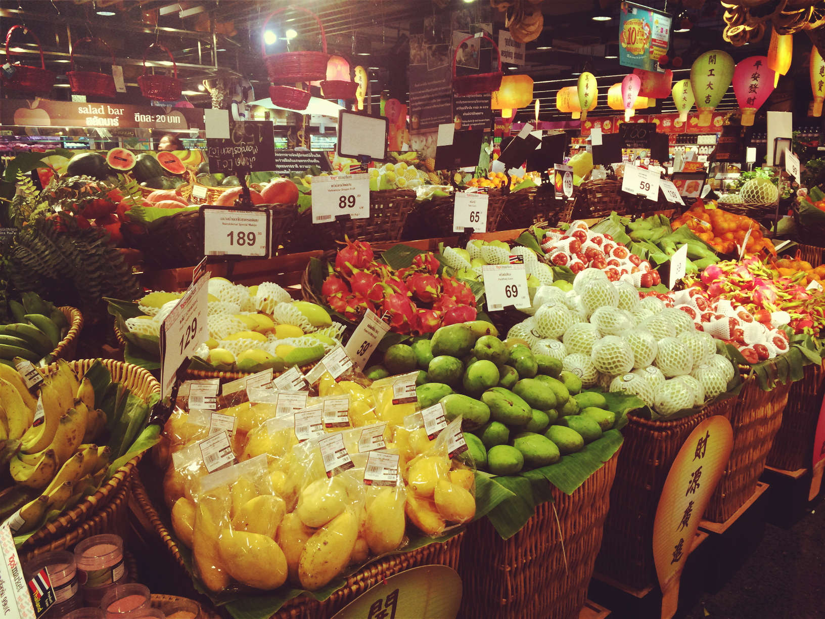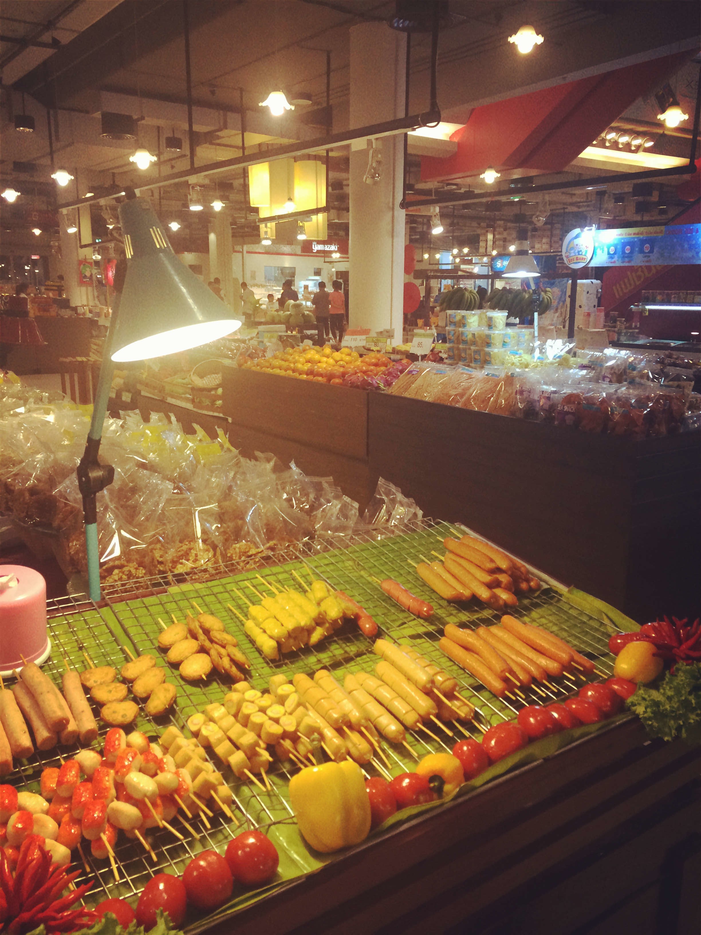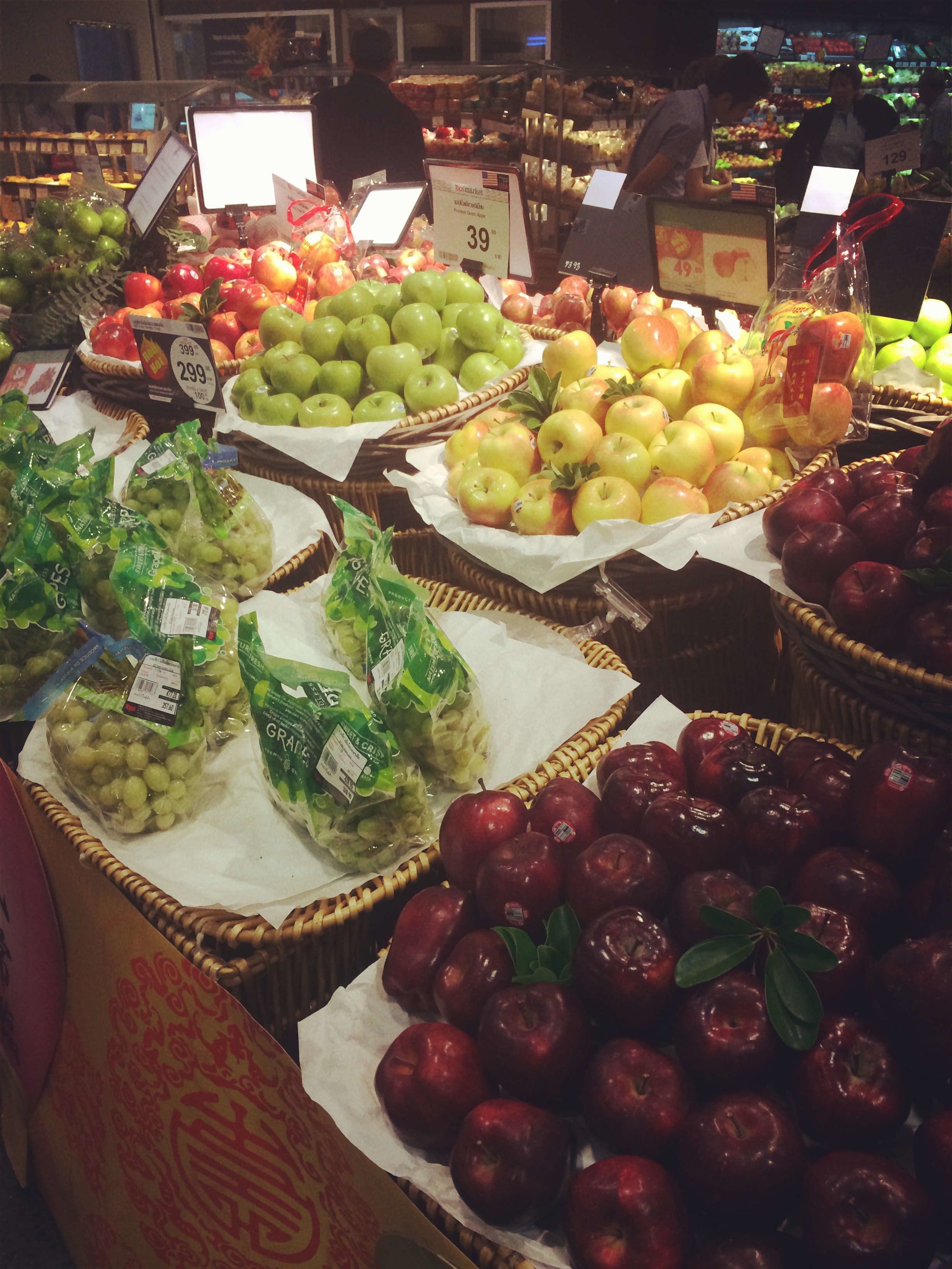在商场的超市里有各种新鲜的应季水果,除非你要买了送礼,否则我不建议你在这里购买,因为街边的散装水果便宜实惠又新鲜,边走边吃绝不丢脸!
