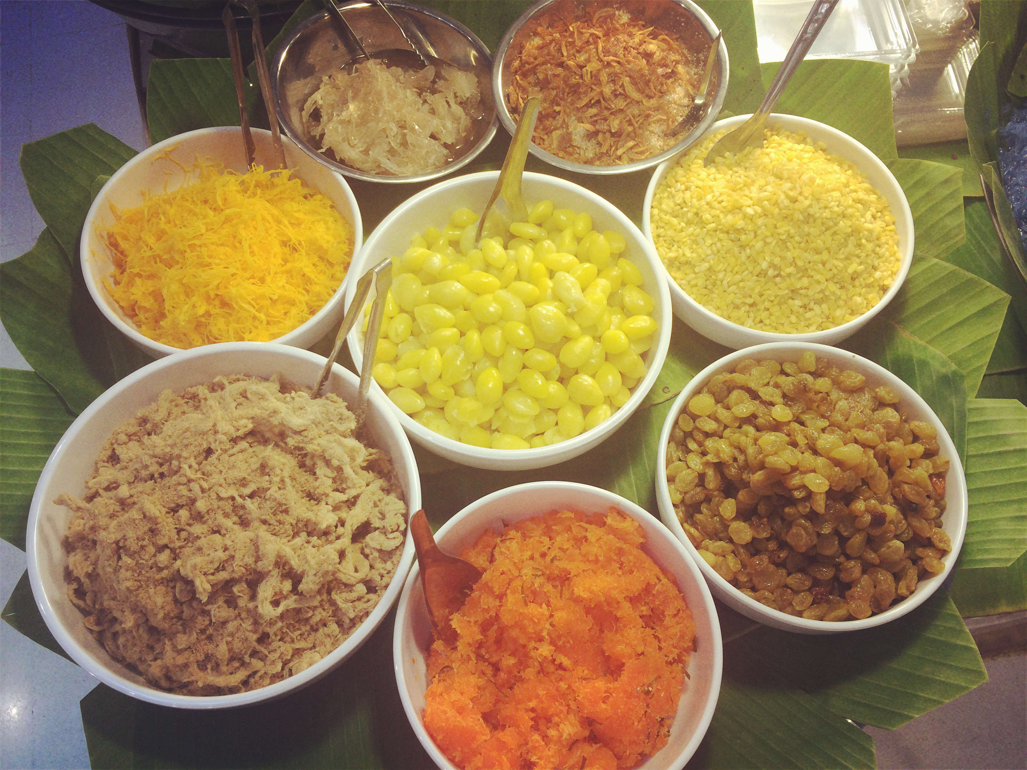 你还可以要求搭配上不同的配料,加的最多的就是香香脆脆的黄色小颗粒——炸糯米