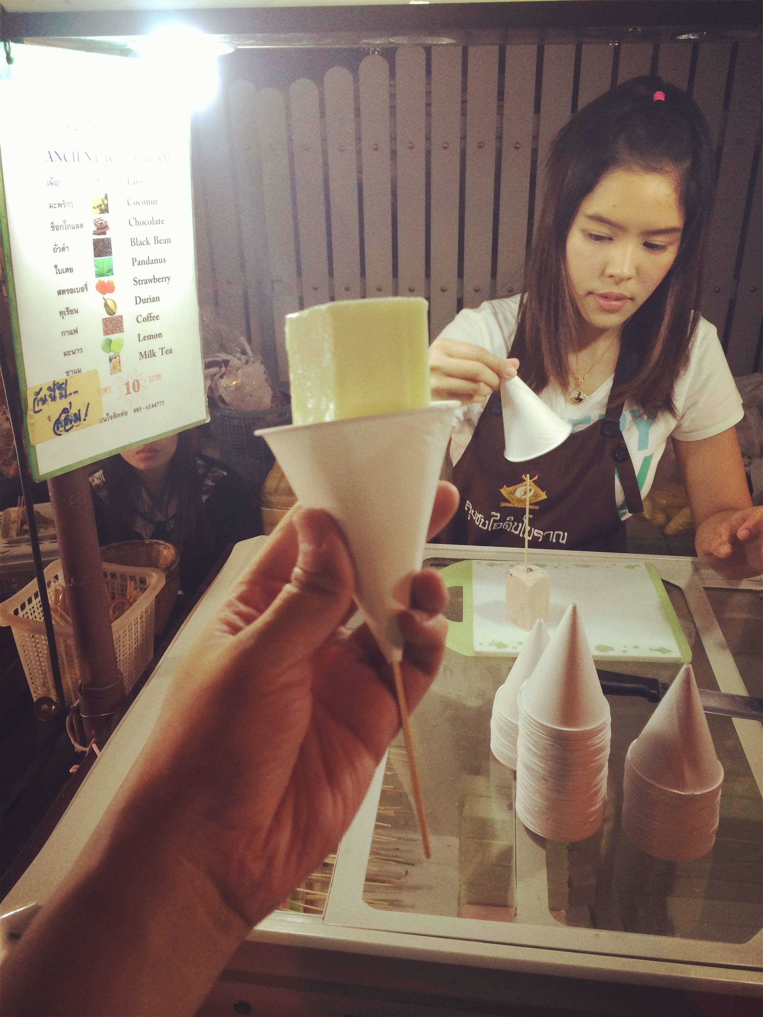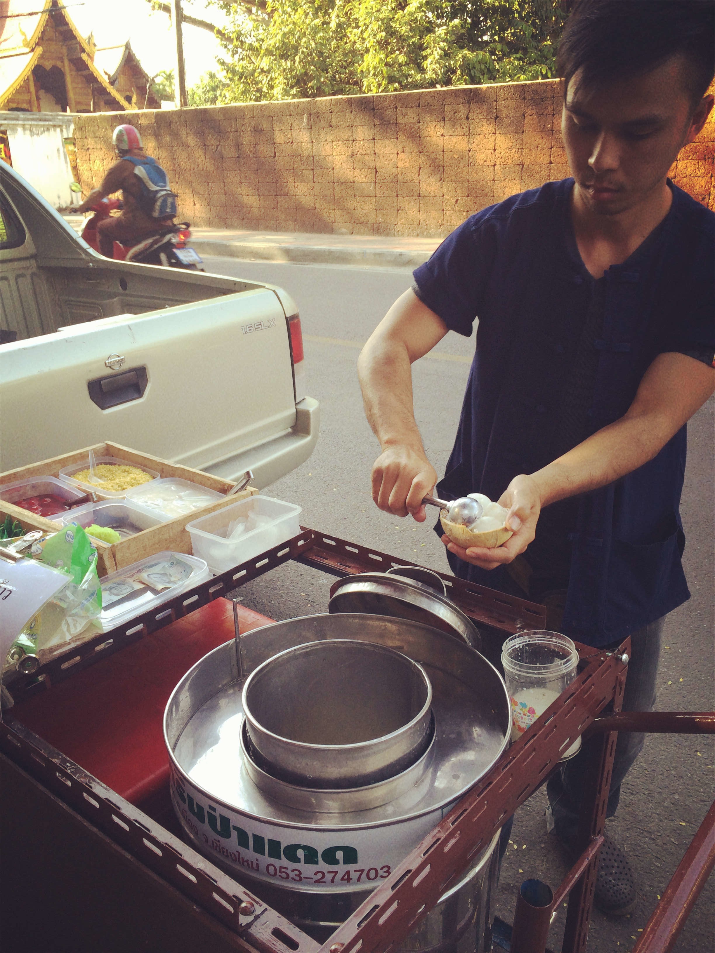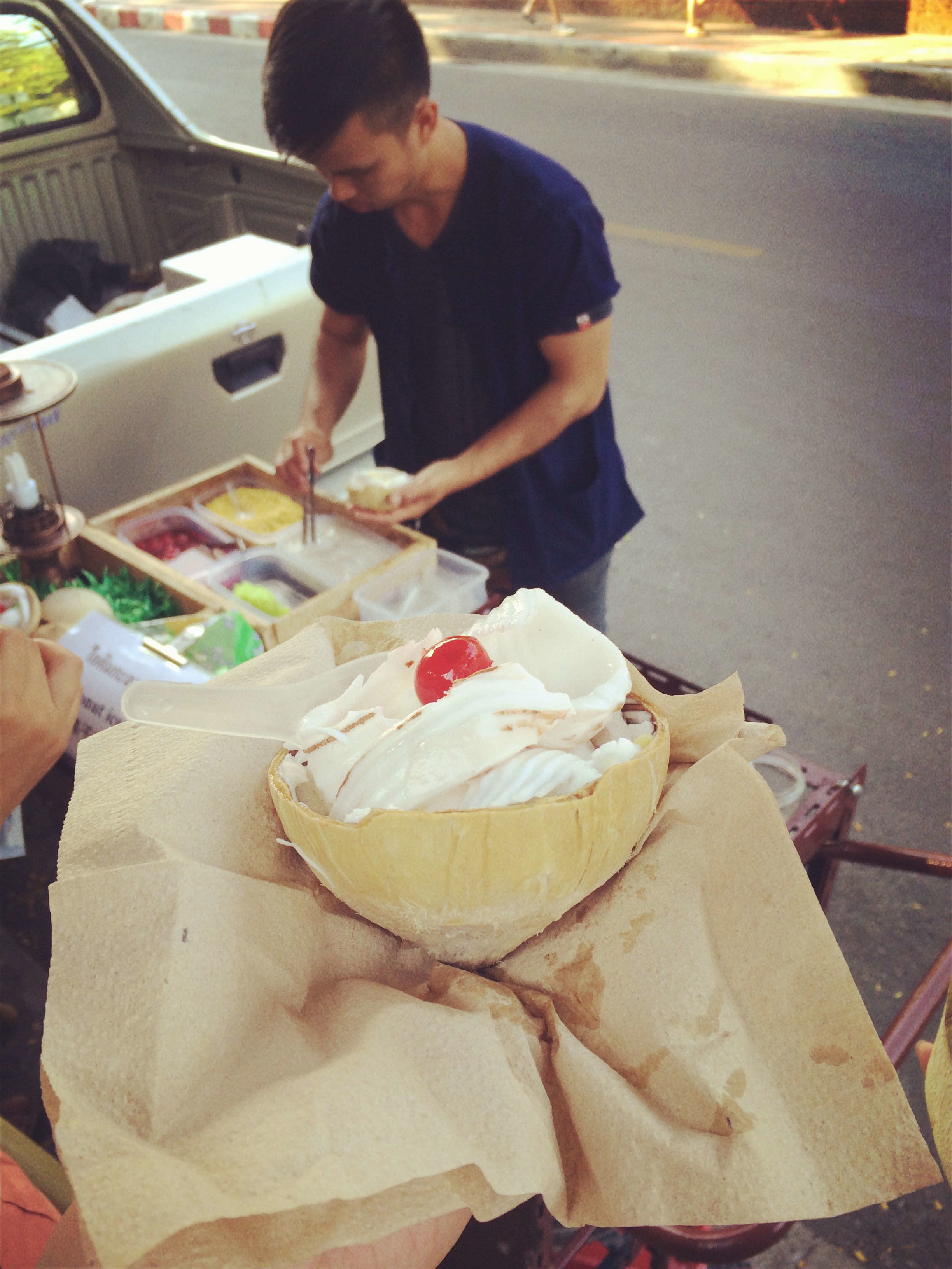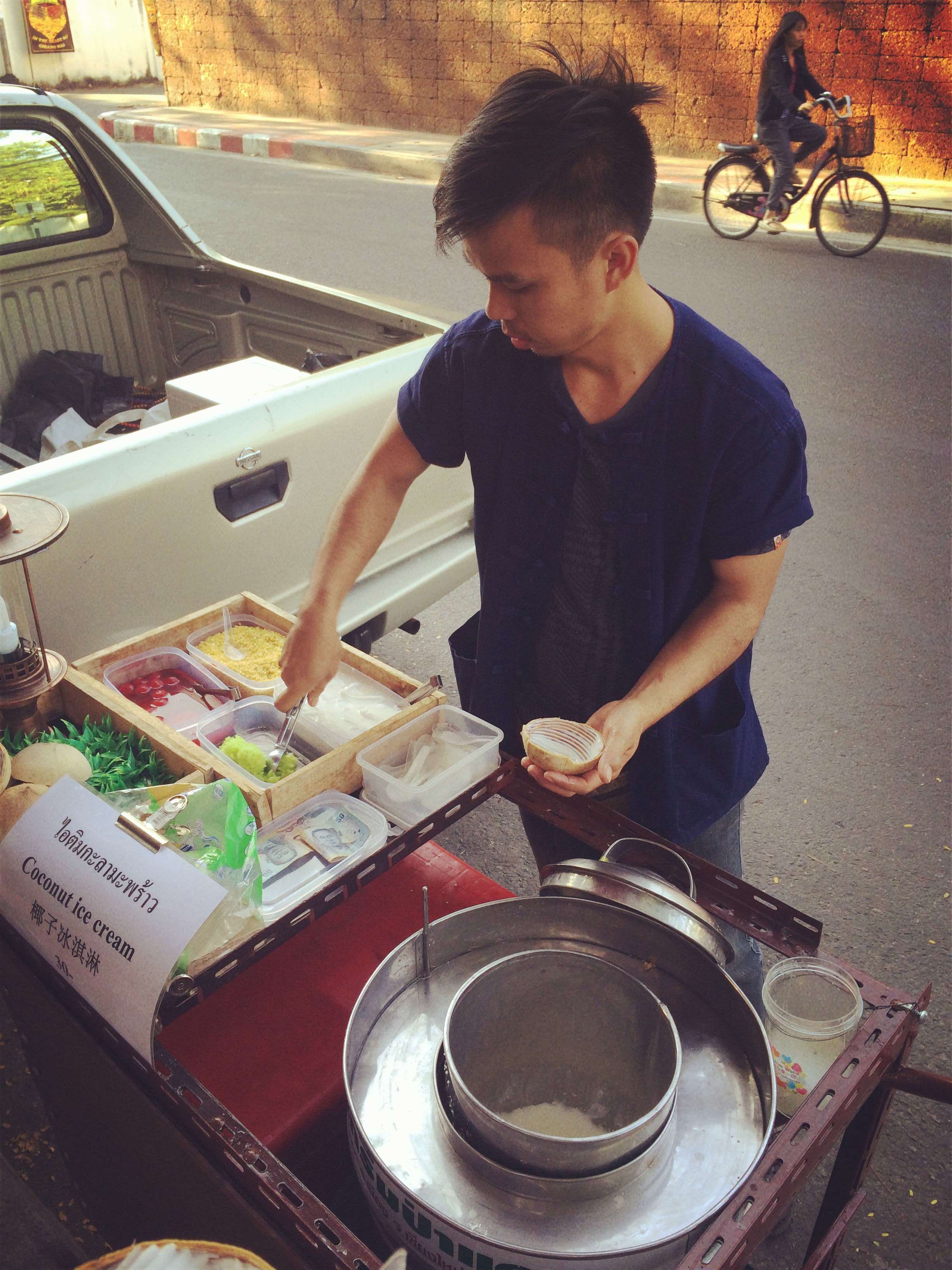 椰子冰淇淋,清迈古城里的一大特色,之所以称之为冰淇淋皇后,是因为椰子的清甜加之冰淇淋的冰爽和椰肉醇厚的搭配,在这样一个没有冬季的国度里绝对是解暑佳品。温文尔雅、醇厚婉约,贵如皇后一般。