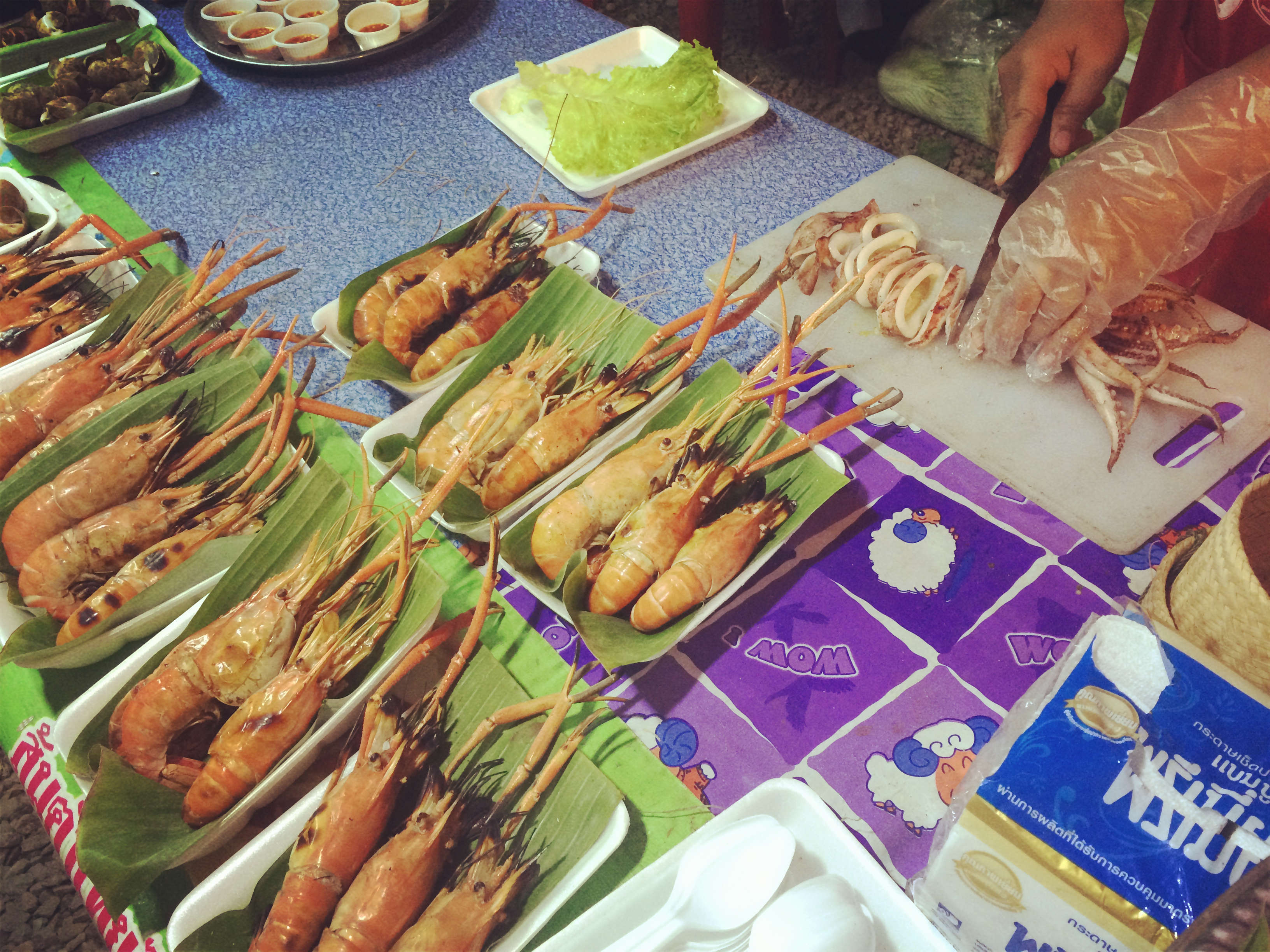 烤大虾、烤鱿鱼,夜市里绝对不可缺少的美味。