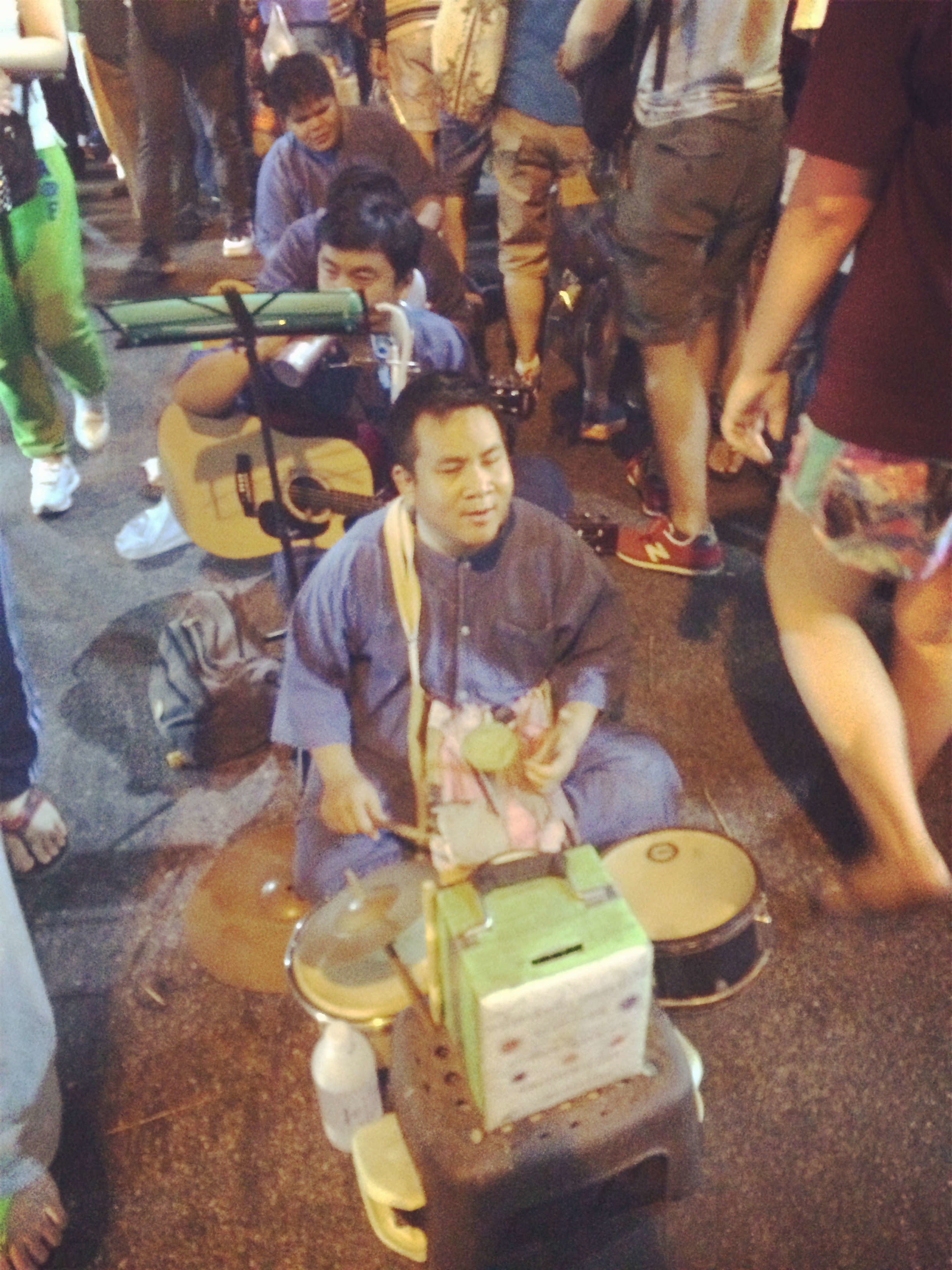 在路的中间你会看到这些伤残人士的才艺表演,他们表情并不卑微,反而是面带笑容,这样的城市给了他们另一种幸福感,那就是人和人之间的包容。
