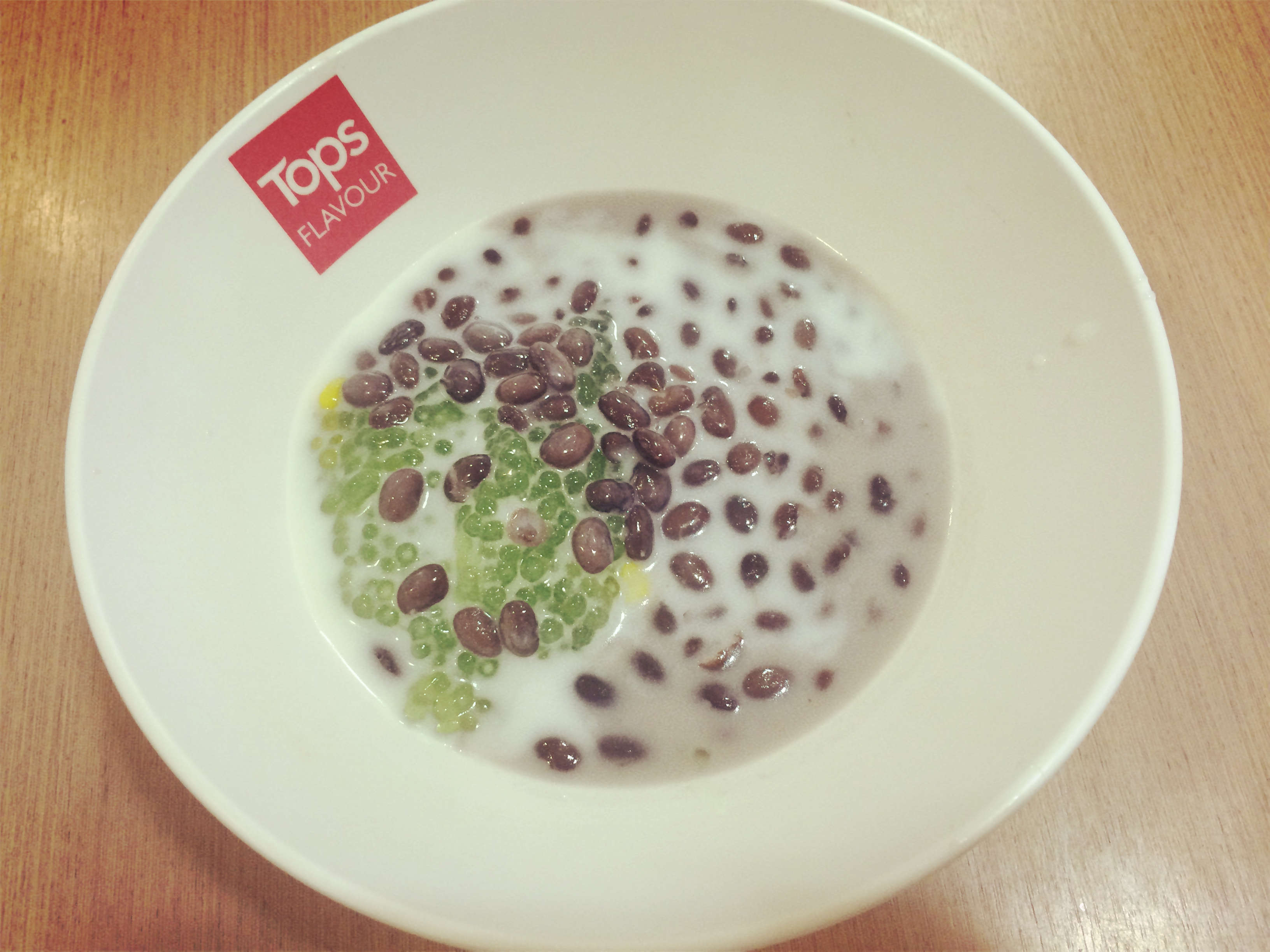 类似于“烧仙草”的小吃,小摊的广告倒是写满了各国语言啊。