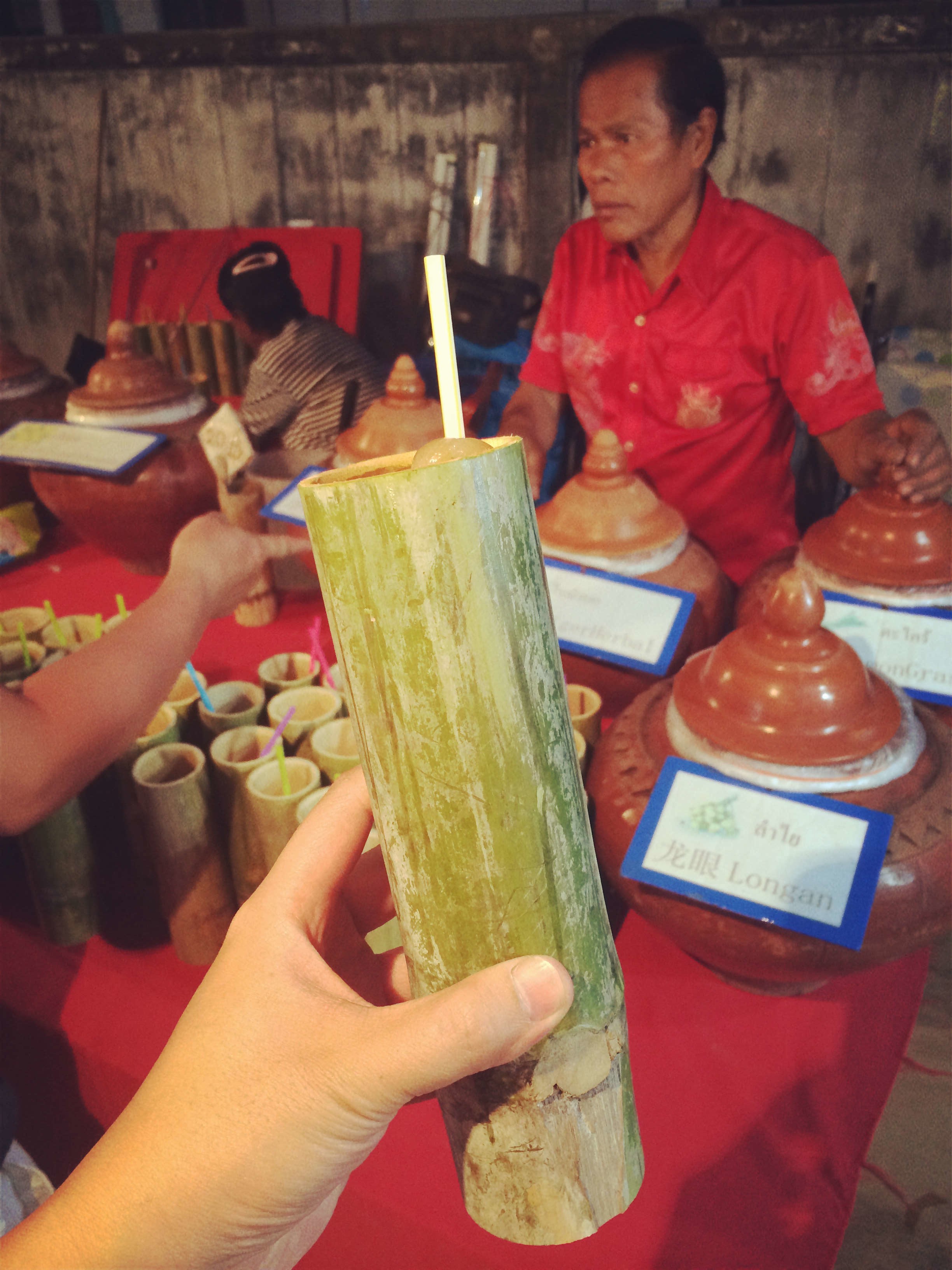 20铢一杯,只是喝完后觉得竹筒就这么扔了有些浪费。