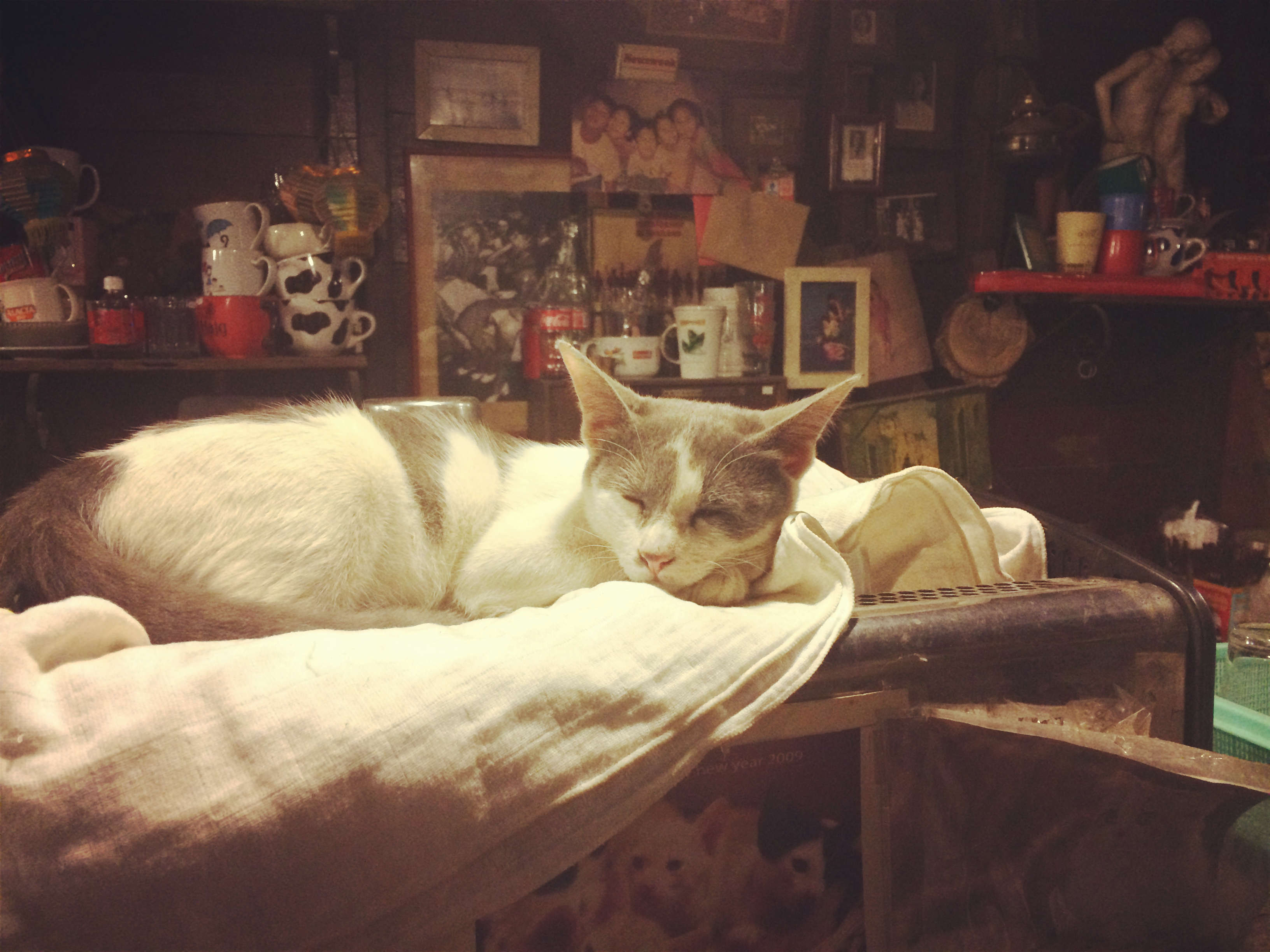 慵懒的猫咪就睡在店中的位置,无论店里进来多少人,它依然做着它的美梦。