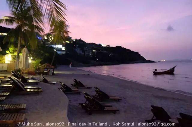 苏梅的海滩数量不少,查文,曾蒙....好多海滩而且有些沙滩归酒店所有,如果你入住的酒店刚好有一片海滩,一大早上去拿毛巾占个座也是不错的选择,夜深了酒店在沙滩上摆上自助,点上蜡烛,乐队,篝火表演,实在大赞。碰巧我入住的美拉提酒店就有这样的配置,还是少说话上图吧。